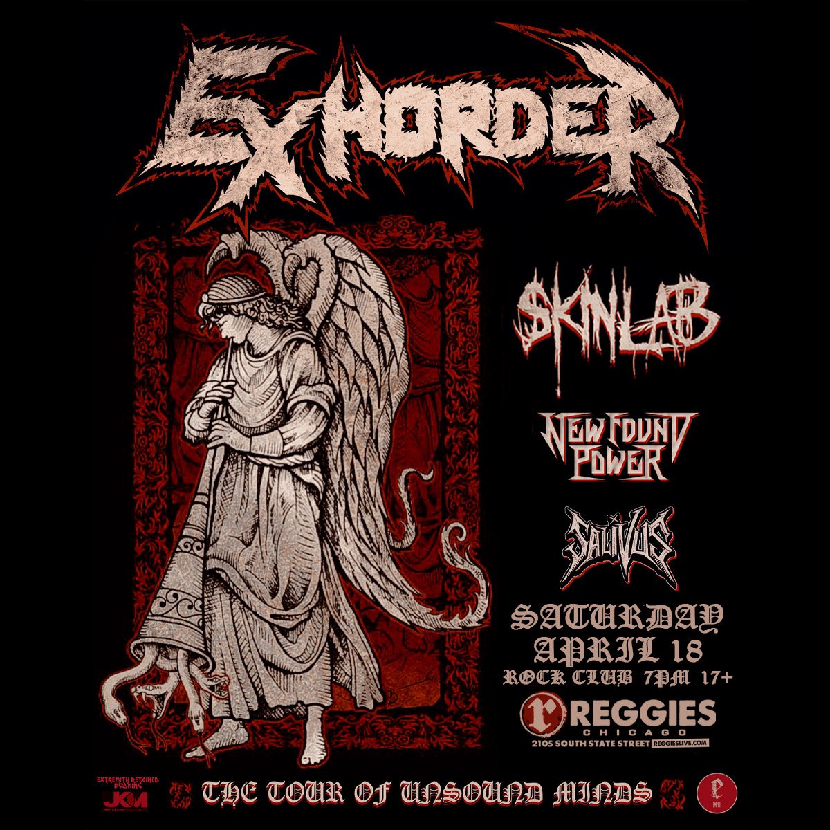 We’ll be in Chicago on April 18th to TEAR IT DOWN at Reggie’s Rock Club with metal LEGENDS Exhorder and Skinlab, with New Found Power right alongside us.