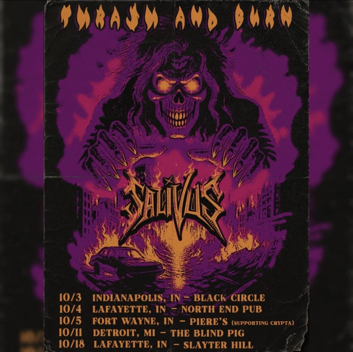 Salivus is a thrash metal band based out of Indiana who is bent on taking the world by storm with fast solos and licks, crazy lyrics, and riffs. They are bound to “Shock & Awe” them all!